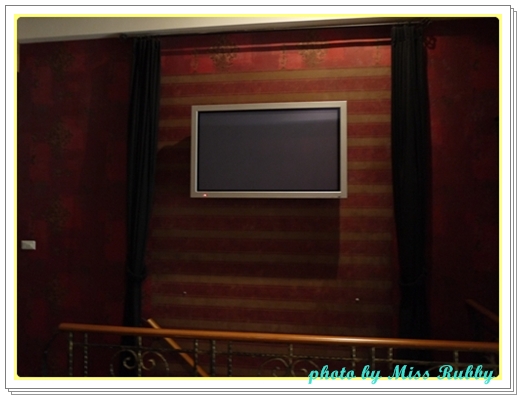 大大的液晶電視就掛在樓梯旁的牆上